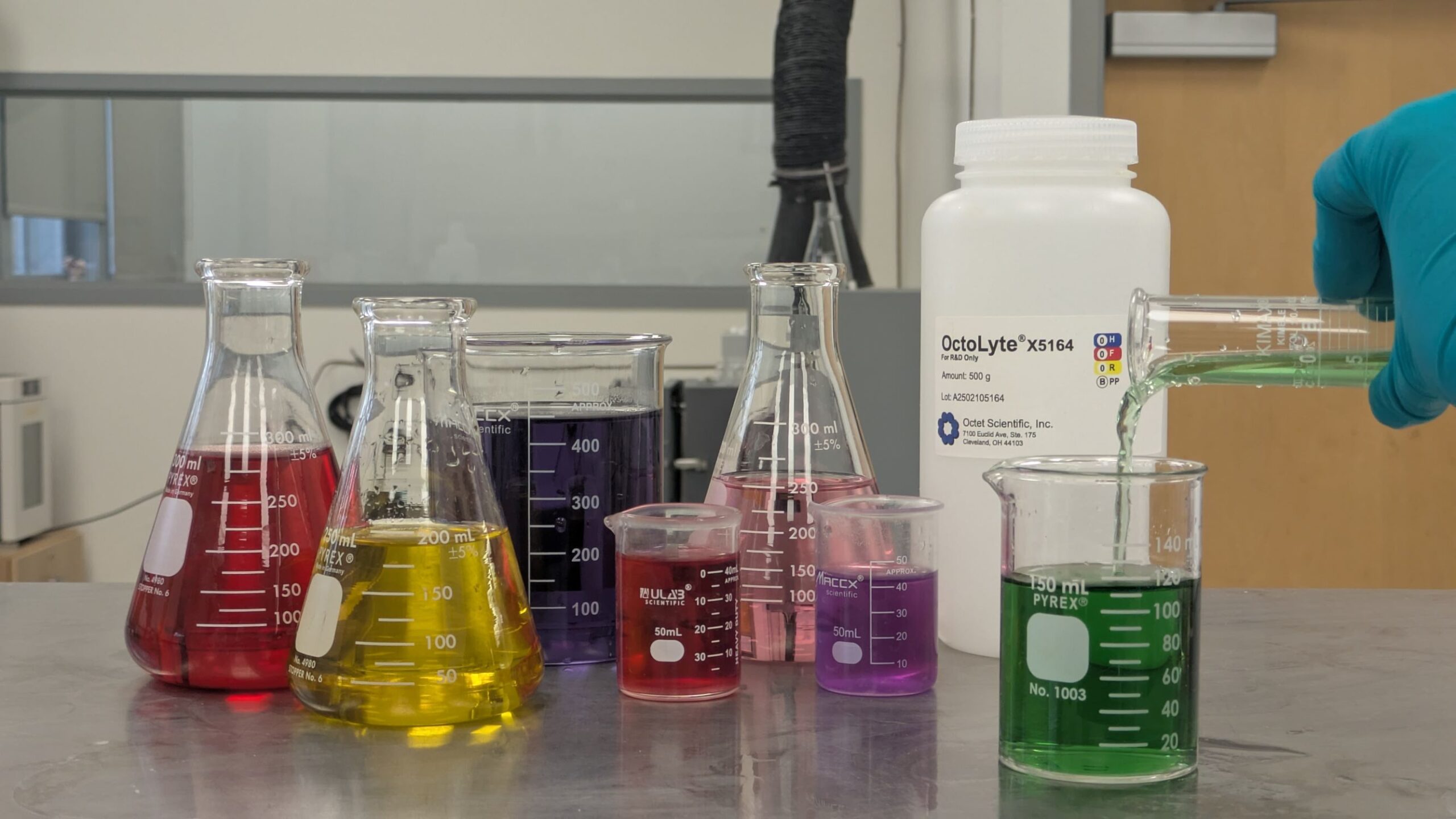 Stability. Life in a battery is rough. We conduct thorough stability testing to ensure candidate molecules can hold up, whether it’s in sulfuric acid or 10M KOH.